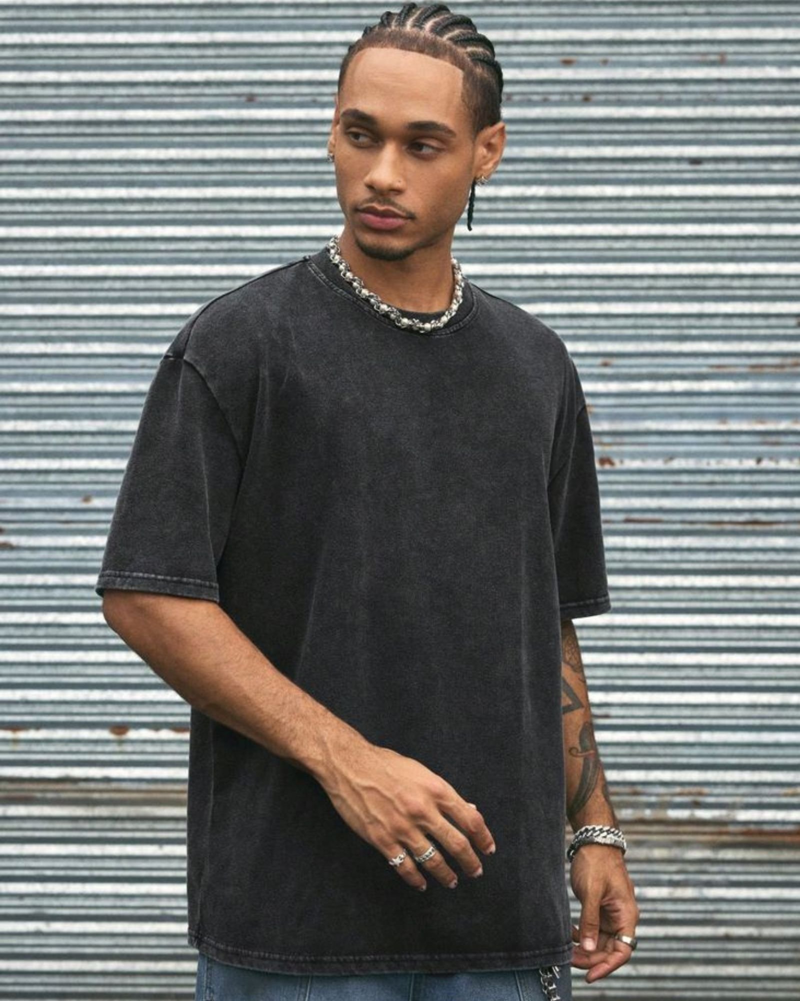ᴛʜᴇ ᴀᴄɪᴅ-ᴡᴀꜱʜᴇᴅ ᴏᴠᴇʀꜱɪᴢᴇᴅ ᴛ-ꜱʜɪʀᴛ, ᴄʀᴀꜰᴛᴇᴅ ꜰʀᴏᴍ 100 ᴘᴇʀᴄᴇɴᴛ ᴄᴏᴛᴛᴏɴ, ᴏꜰꜰᴇʀꜱ ᴀ ᴘᴇʀꜰᴇᴄᴛ ʙʟᴇɴᴅ ᴏꜰ ᴄᴏᴍꜰᴏʀᴛ ᴀɴᴅ ꜱᴛʏʟᴇ. ɪᴛꜱ ᴜɴɪQᴜᴇ ᴀᴄɪᴅ-ᴡᴀꜱʜ ꜰɪɴɪꜱʜ ᴄʀᴇᴀᴛᴇꜱ ᴀ ᴅɪꜱᴛɪɴᴄᴛ, ᴠɪɴᴛᴀɢᴇ ᴀᴇꜱᴛʜᴇᴛɪᴄ ᴛʜᴀᴛ ꜱᴇᴛꜱ ɪᴛ ᴀᴘᴀʀᴛ ꜰʀᴏᴍ ꜱᴛᴀɴᴅᴀʀᴅ ᴛᴇᴇꜱ. ᴛʜᴇ ᴏᴠᴇʀꜱɪᴢᴇᴅ ꜰɪᴛ ᴘʀᴏᴠɪᴅᴇꜱ ᴀ ʀᴇʟᴀxᴇᴅ ᴀɴᴅ ᴇꜰꜰᴏʀᴛʟᴇꜱꜱʟʏ ᴄᴏᴏʟ ʟᴏᴏᴋ, ᴍᴀᴋɪɴɢ ɪᴛ ᴀ ᴠᴇʀꜱᴀᴛɪʟᴇ ᴀᴅᴅɪᴛɪᴏɴ ᴛᴏ ᴀɴʏ ᴡᴀʀᴅʀᴏʙᴇ. ᴡʜᴇᴛʜᴇʀ ᴘᴀɪʀᴇᴅ ᴡɪᴛʜ ᴊᴇᴀɴꜱ ꜰᴏʀ ᴀ ᴄᴀꜱᴜᴀʟ ᴅᴀʏ ᴏᴜᴛ ᴏʀ ʟᴀʏᴇʀᴇᴅ ᴜɴᴅᴇʀ ᴀ ᴊᴀᴄᴋᴇᴛ ꜰᴏʀ ᴀ ᴍᴏʀᴇ ᴘᴏʟɪꜱʜᴇᴅ ᴀᴘᴘᴇᴀʀᴀɴᴄᴇ, ᴛʜɪꜱ ᴛ-ꜱʜɪʀᴛ ɪꜱ ᴅᴇꜱɪɢɴᴇᴅ ᴛᴏ ᴍᴇᴇᴛ ᴛʜᴇ ᴅᴇᴍᴀɴᴅꜱ ᴏꜰ ʙᴏᴛʜ ꜰᴀꜱʜɪᴏɴ ᴀɴᴅ ᴄᴏᴍꜰᴏʀᴛ. ᴛʜᴇ ʙʀᴇᴀᴛʜᴀʙʟᴇ ᴄᴏᴛᴛᴏɴ ꜰᴀʙʀɪᴄ ᴇɴꜱᴜʀᴇꜱ ᴀ ꜱᴏꜰᴛ ᴛᴏᴜᴄʜ ᴀɢᴀɪɴꜱᴛ ᴛʜᴇ ꜱᴋɪɴ, ᴍᴀᴋɪɴɢ ɪᴛ ᴀɴ ɪᴅᴇᴀʟ ᴄʜᴏɪᴄᴇ ꜰᴏʀ ᴛʜᴏꜱᴇ ᴡʜᴏ ᴘʀɪᴏʀɪᴛɪᴢᴇ ʙᴏᴛʜ ꜱᴛʏʟᴇ ᴀɴᴅ ᴇᴀꜱᴇ.