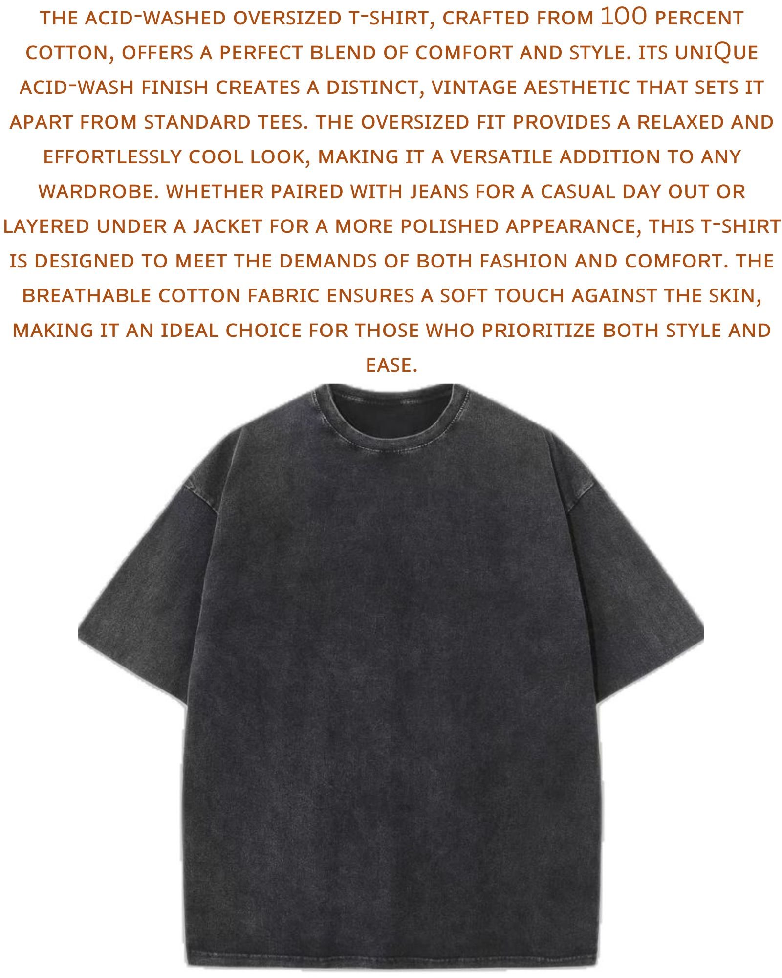 Upgrade your casual wardrobe with our Premium Acid washed Oversized Cotton Tee, crafted for both comfort and style.